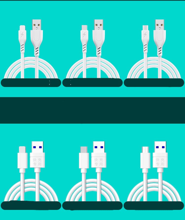 Color classification: Android Type-c data cable 1 meter 2A, Android Micro data cable 1 meter 2A, Apple lightning data cable 1 meter 2A, Apple lightning data cable 1 meter 5A, Android Micro data cable 1 meter 5A, Android Type-c data cable 1 meter 5A points line