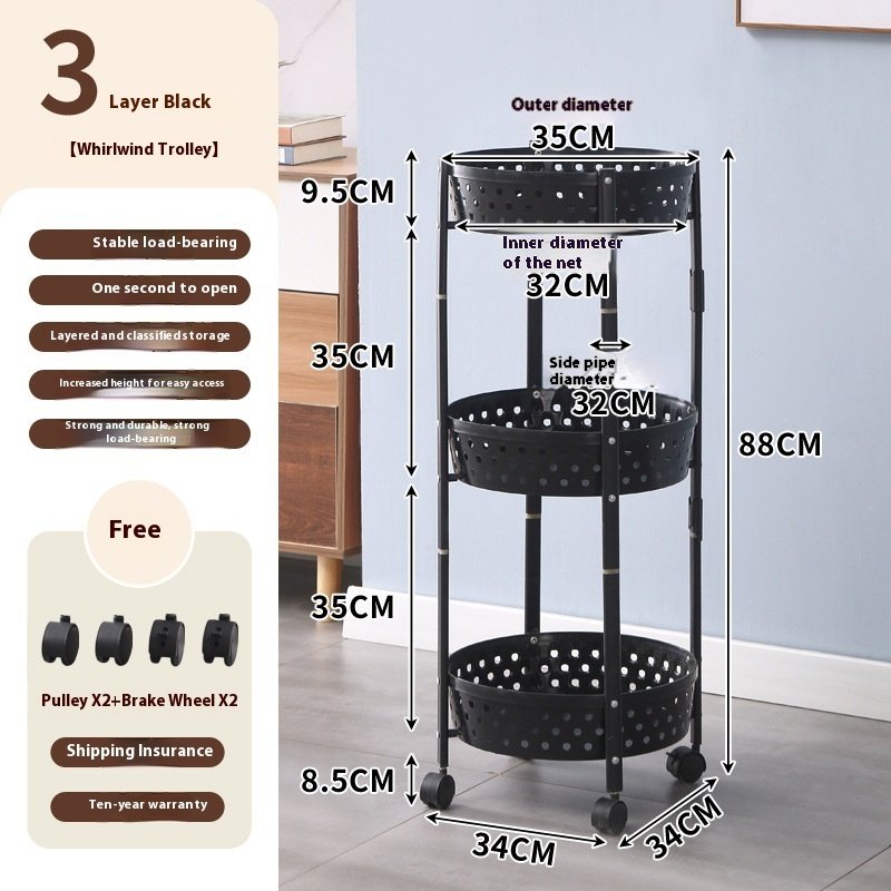 Folding Racks Multi-layer Fruit And Vegetable Snack Storage Trolley