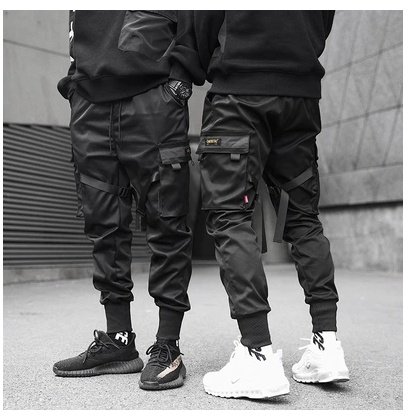 Hot Sale Men Black Hip Hop Cargo Pants Elastic Waist Jogger Trousers Sweatpants Pockets Full Length Casual Fashion